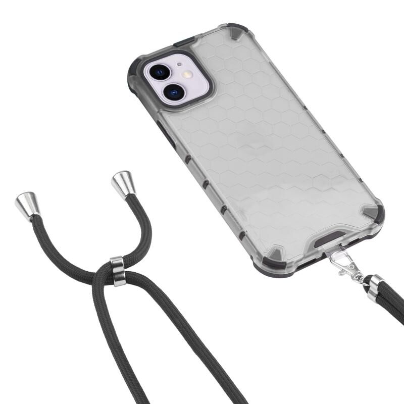 Θήκη για iPhone 11 ανθεκτική στις κρούσεις, από PC + TPU με κυψελοειδές σχέδιο και λουρί λαιμού (Κόκκινη)