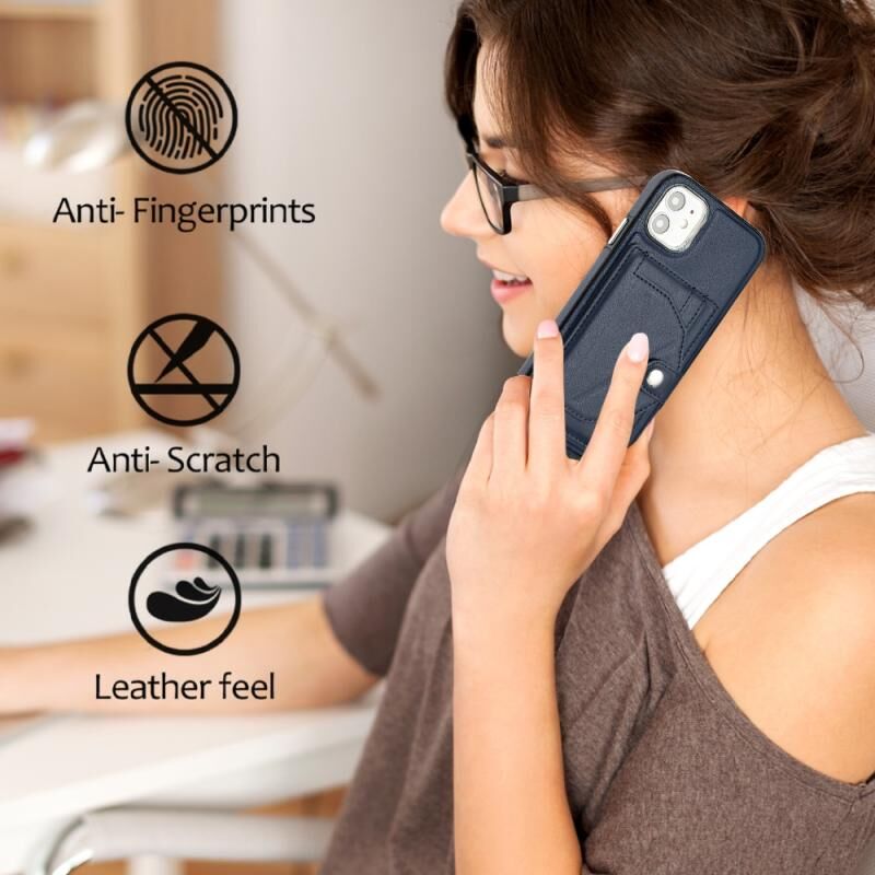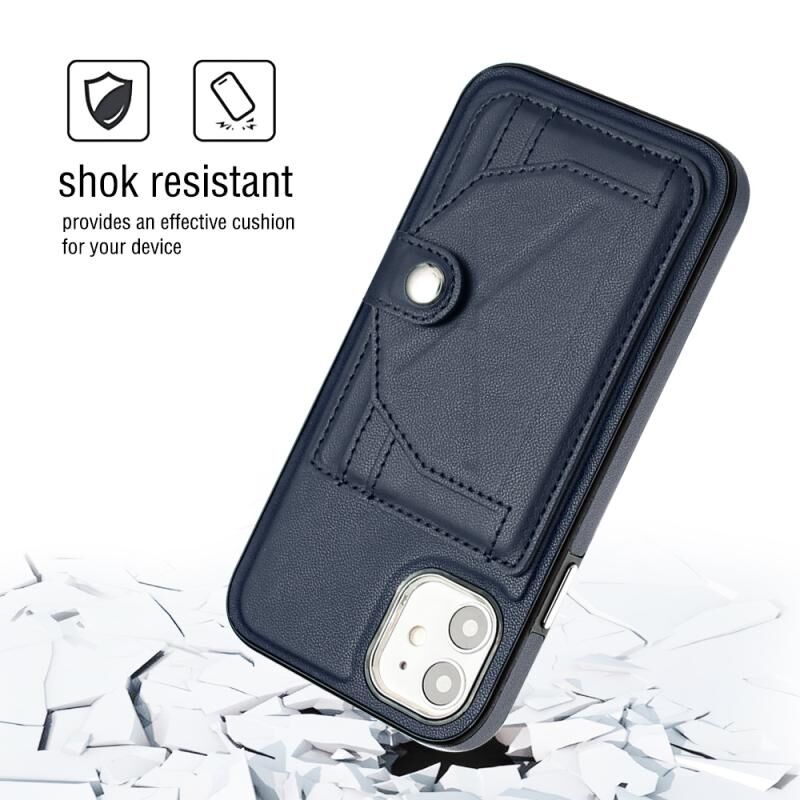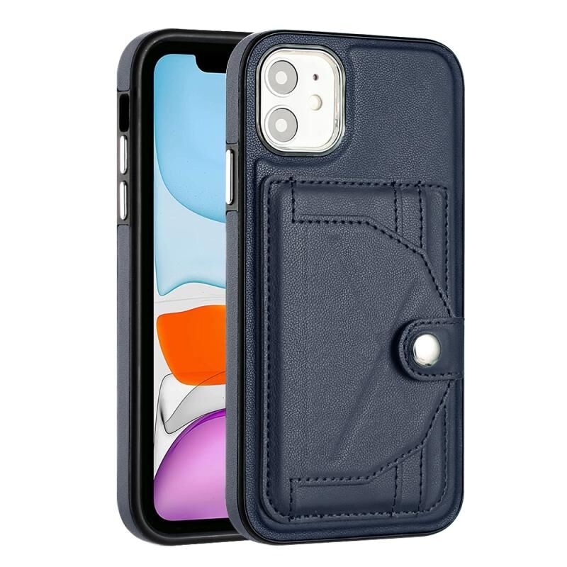For iPhone 11 Shockproof Leather Phone Case with Card Holder(Blue)