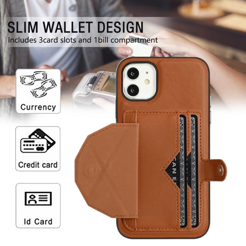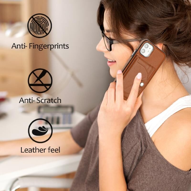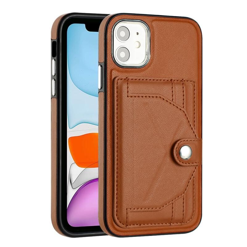 For iPhone 11 Shockproof Leather Phone Case with Card Holder(Brown)