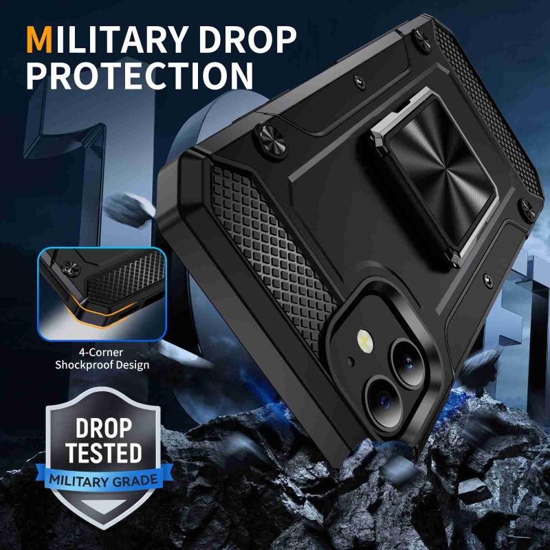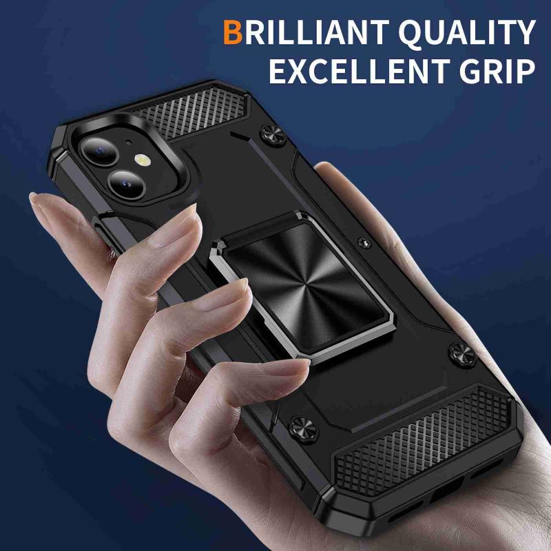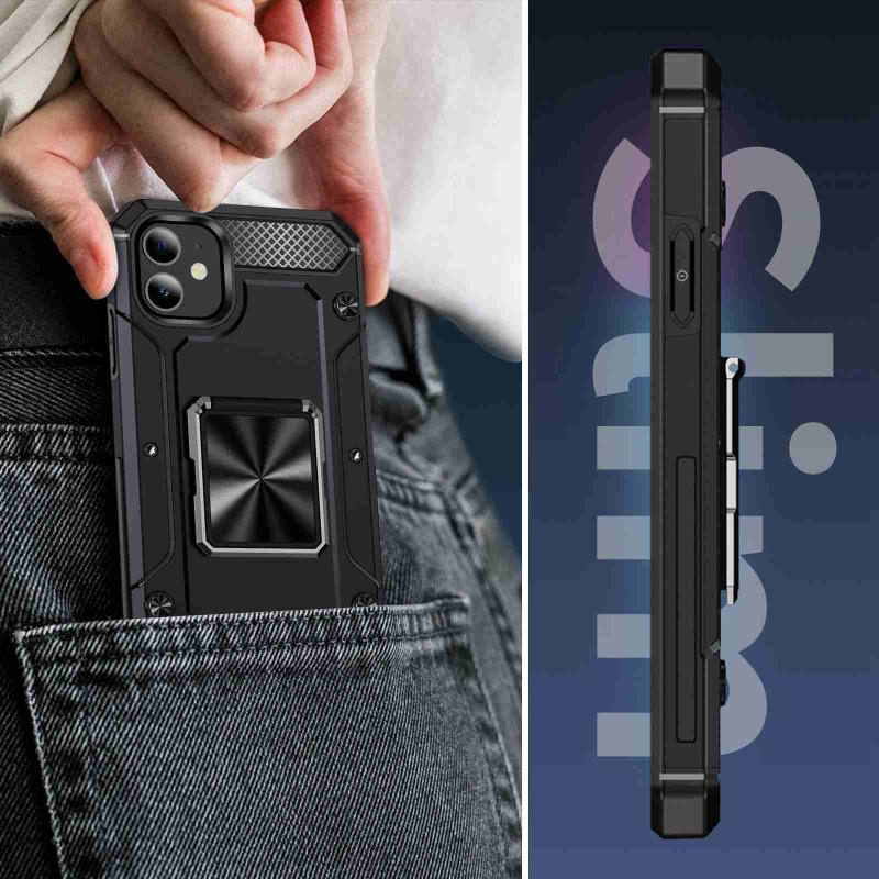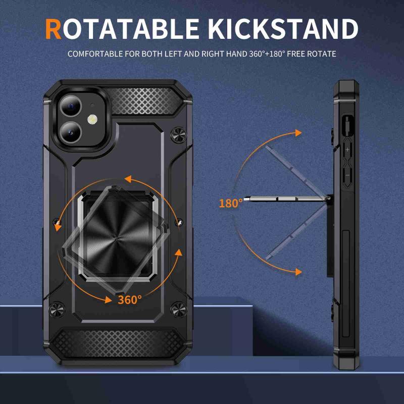 For iPhone 11 Shockproof Metal Holder Phone Case(Black)