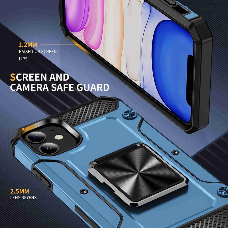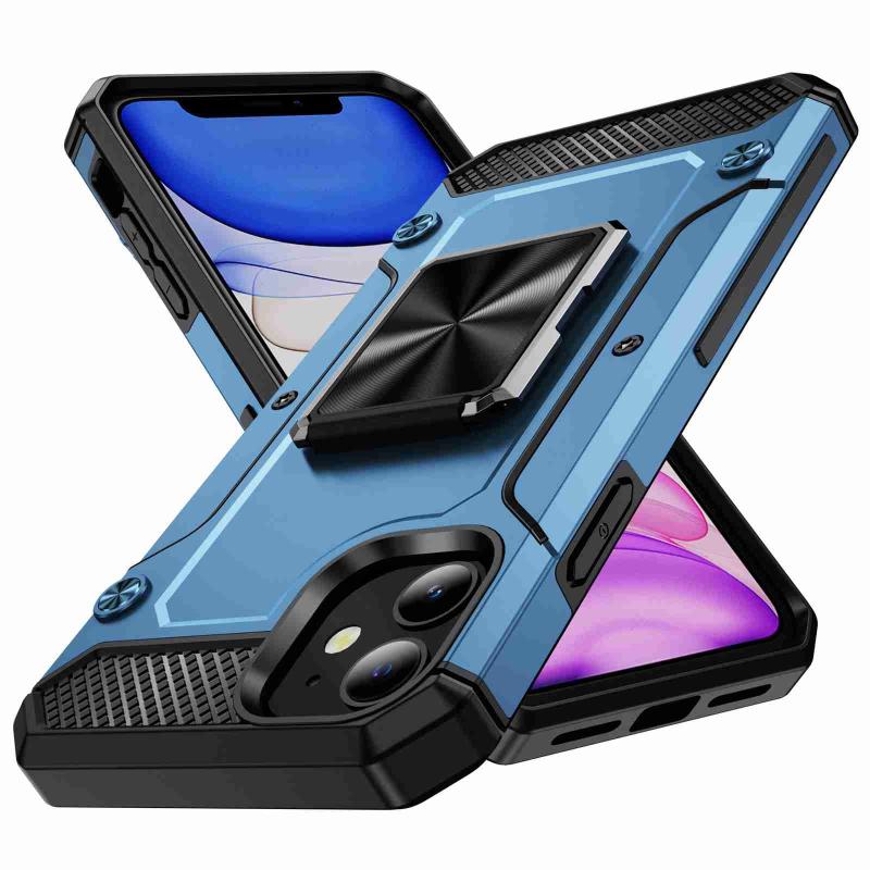 For iPhone 11 Shockproof Metal Holder Phone Case(Navy Blue)