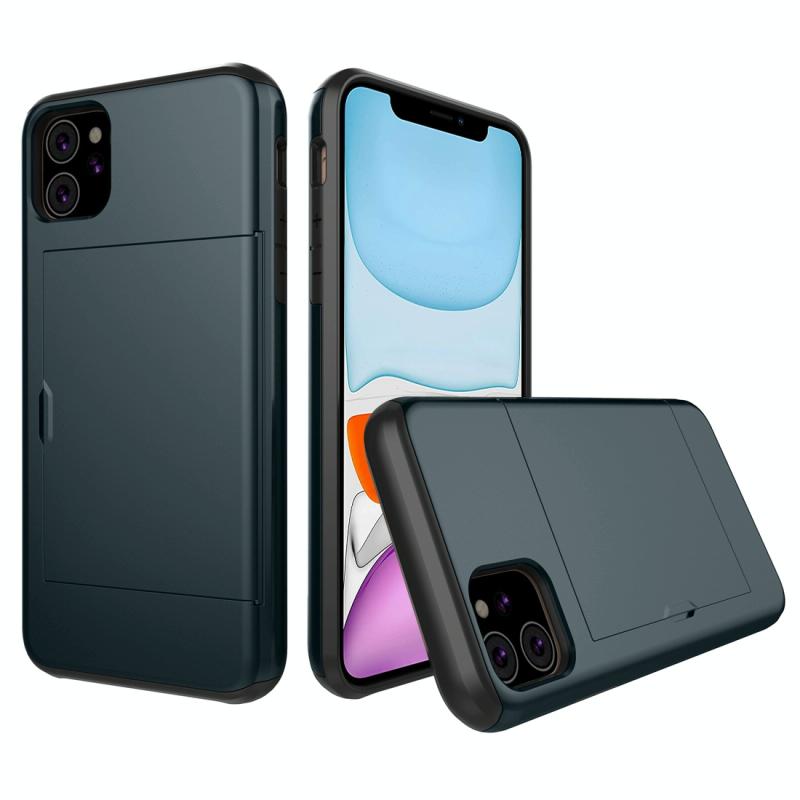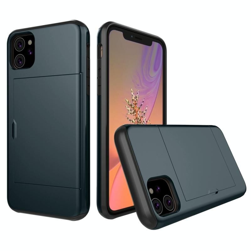 For iPhone 11 Shockproof Rugged Armor Protective Case with Card Slot (Navy Blue)