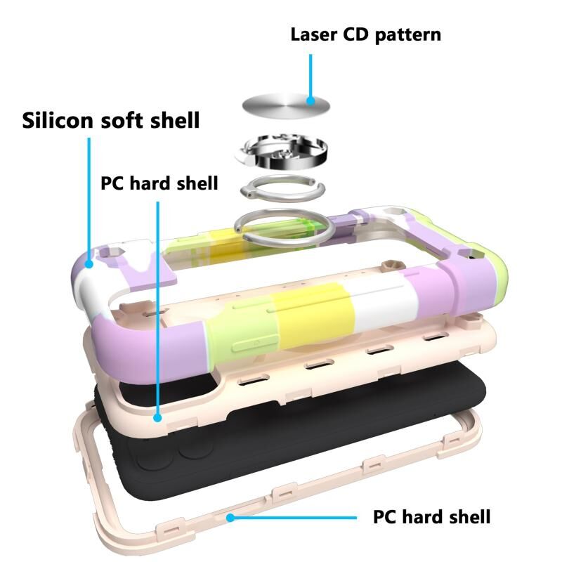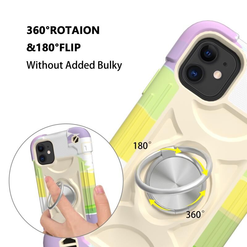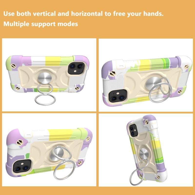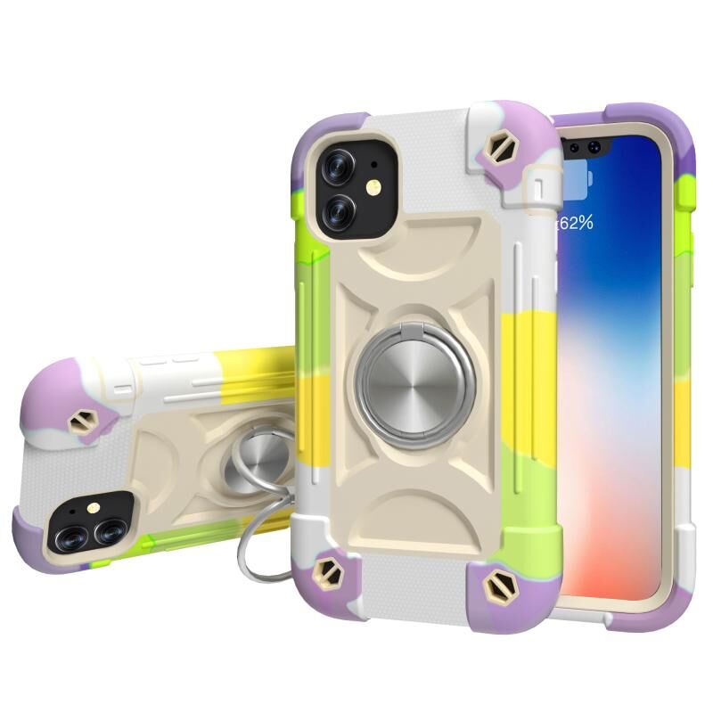 For iPhone 11 Shockproof Silicone + PC Protective Case with Dual-Ring Holder (Colorful Beige)