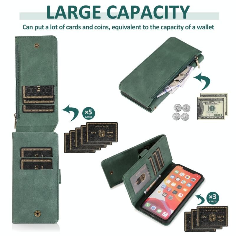 For iPhone 11 Skin-feel Crazy Horse Texture Zipper Wallet Bag Horizontal Flip Leather Case with Holder & Card Slots & Wallet & Lanyard (Dark Green)