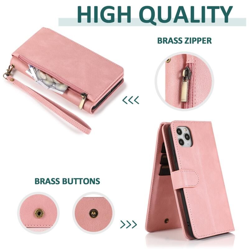 For iPhone 11 Skin-feel Crazy Horse Texture Zipper Wallet Bag Horizontal Flip Leather Case with Holder & Card Slots & Wallet & Lanyard (Rose Gold)