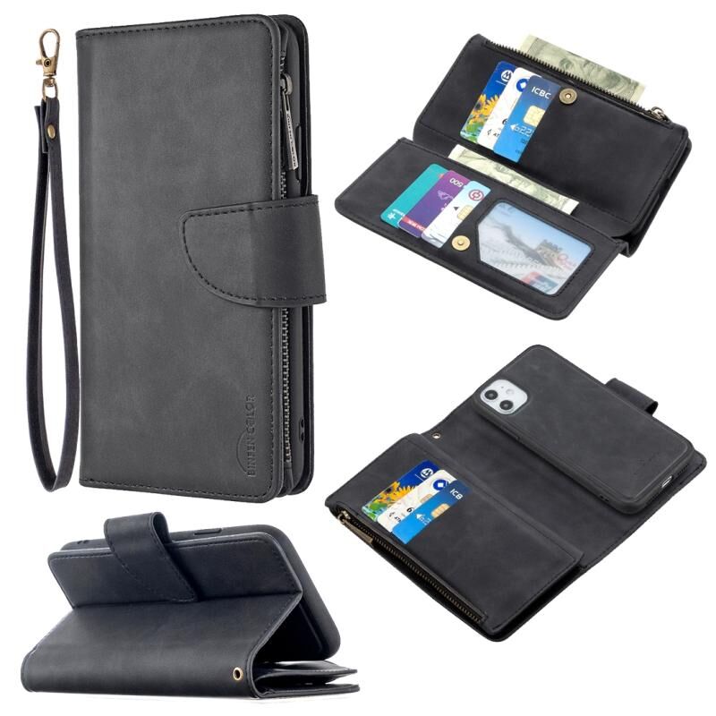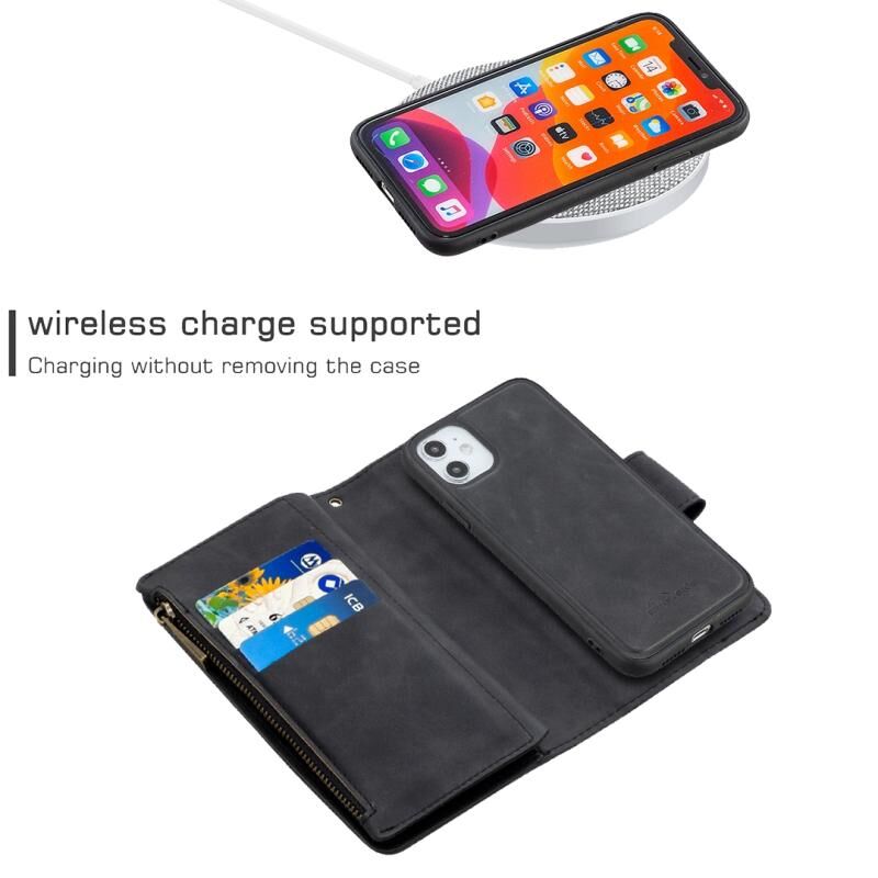 Θήκη για iPhone 11 με αίσθηση δέρματος, αποσπώμενη, μαγνητική, οριζόντια, με φερμουάρ, από δερματίνη PU, με πολλαπλές θήκες για κάρτες, βάση, πορτοφόλι, κορνίζα φωτογραφιών & λουρί (Καφέ)