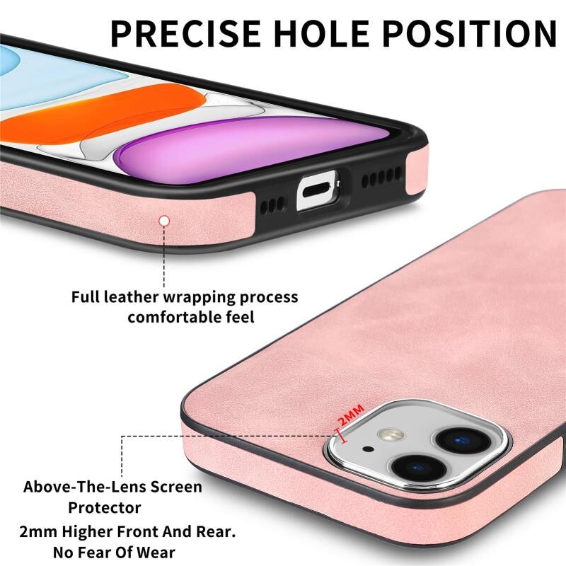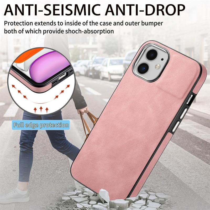 Θήκη κινητού τηλεφώνου για iPhone 11 με αίσθηση δέρματος, γαλβανισμένη TPU, αντικραδασμική (Ροζ)