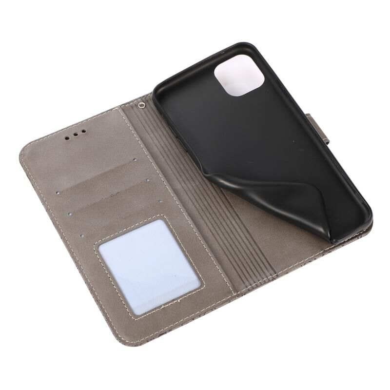 Θήκη για iPhone 11 με υφή δέρματος, ανάγλυφο ηλιοτρόπιο, οριζόντια, δερμάτινη με βάση & θήκες για κάρτες & πορτοφόλι & κορδόνι (Μωβ)