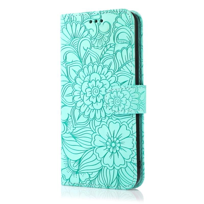 Θήκη για iPhone 11 με υφή δέρματος, ανάγλυφο ηλιοτρόπιο, οριζόντια, δερμάτινη με βάση & θήκες για κάρτες & πορτοφόλι & κορδόνι (Μωβ)
