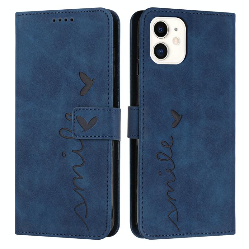 For iPhone 11 Skin Feel Heart Pattern Leather Phone Case (Blue)