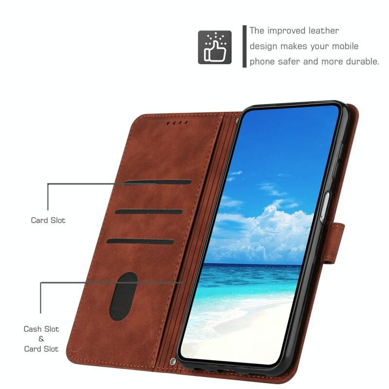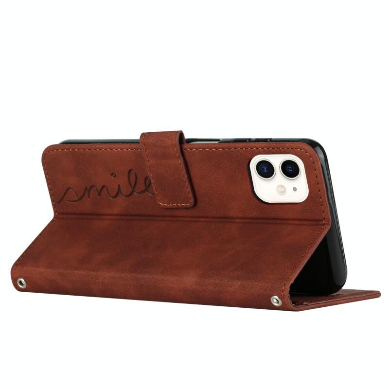 For iPhone 11 Skin Feel Heart Pattern Leather Phone Case With Lanyard (Brown)