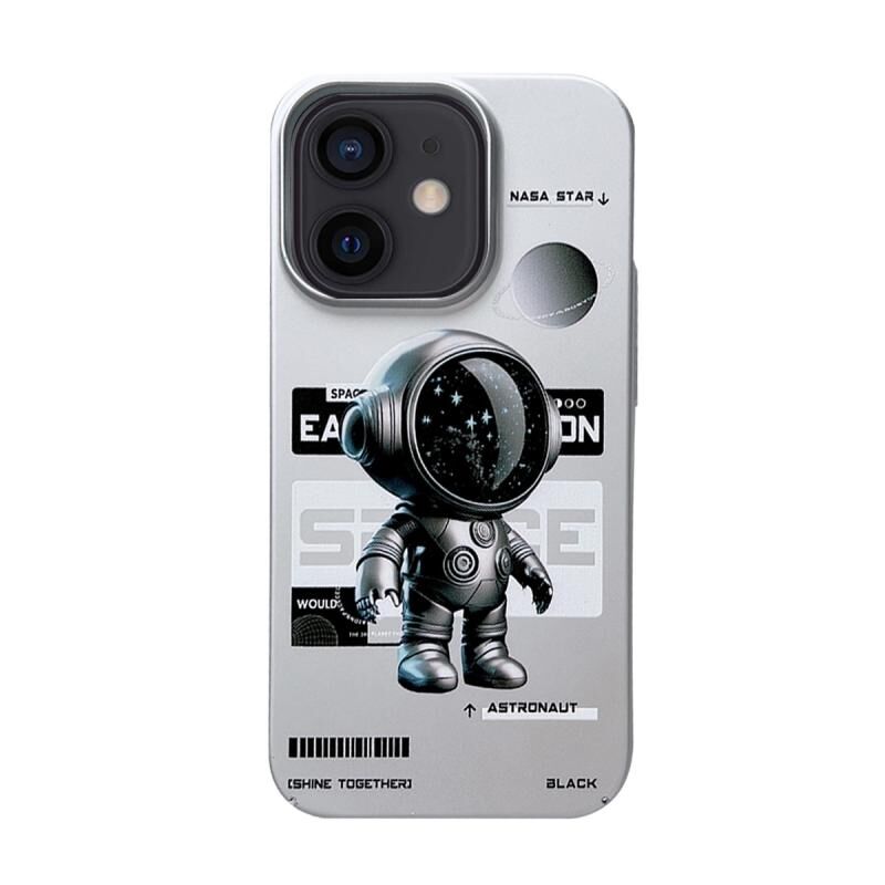 Θήκη κινητού τηλεφώνου για iPhone 11 με υφή δέρματος και σχέδιο αστροναύτη από μέταλλο (πλάγια όψη)
