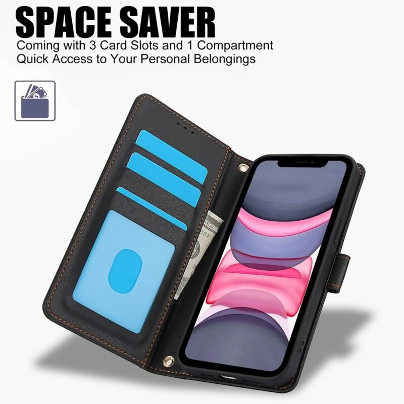 Θήκη τηλεφώνου από δέρμα για iPhone 11 με αίσθηση δέρματος, καθαρά χρώματα, θήκες καρτών και διπλό κορδόνι (Μαύρο)
