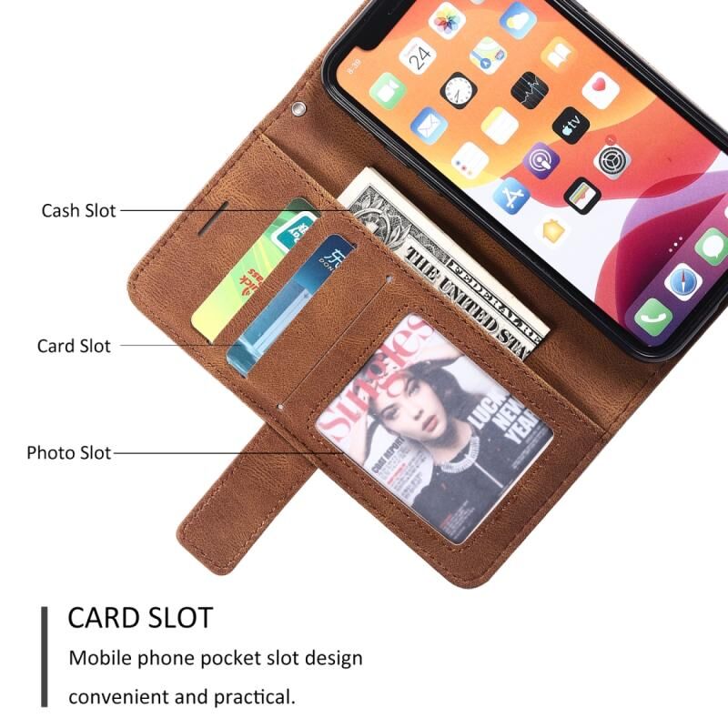 Θήκη δέρματος οριζόντιας αναδίπλωσης για iPhone 11 με αίσθηση δέρματος, ραφές και βάση στήριξης, θήκες για κάρτες, πορτοφόλι και κορνίζα φωτογραφιών (Μπλε)