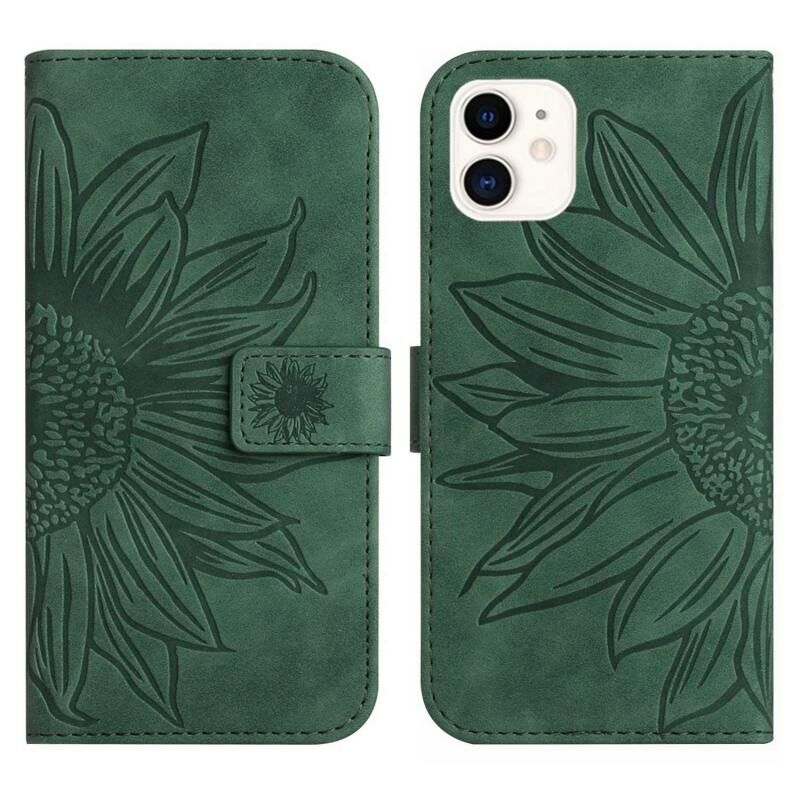 Θήκη τηλεφώνου από δέρμα με σχέδιο ηλιοτρόπιου και αίσθηση δέρματος για iPhone 11, με λουρί (Κόκκινο)