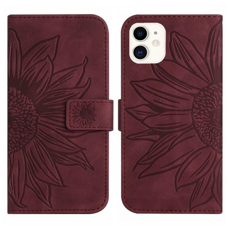 Θήκη τηλεφώνου από δέρμα με σχέδιο ηλιοτρόπιου και αίσθηση δέρματος για iPhone 11, με λουρί (Κόκκινο)