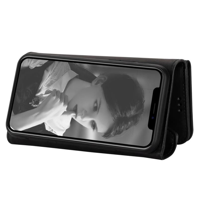 Θήκη για iPhone 11, δερμάτινη οριζόντια με φερμουάρ, αίσθηση δέρματος, με θήκη, υποδοχές καρτών, κορνίζα φωτογραφιών, κορδόνι και μακρύ σχοινί (Μαύρο)