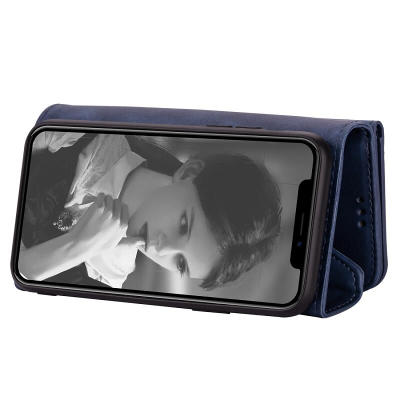 Θήκη για iPhone 11, δερμάτινη οριζόντια με φερμουάρ, αίσθηση δέρματος, με θήκη, υποδοχές καρτών, κορνίζα φωτογραφιών, κορδόνι και μακρύ σχοινί (Μαύρο)