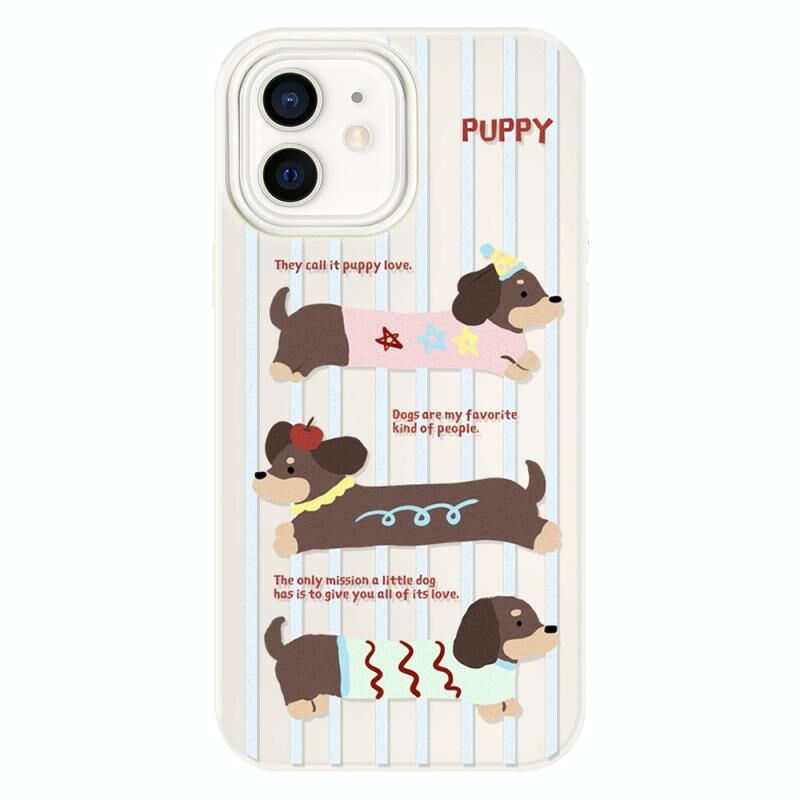 Θήκη τηλεφώνου για iPhone 11, υβριδική από TPU και PC, με αίσθηση ζελέ (Λευκό Ντάσχχουντ με ρίγες)