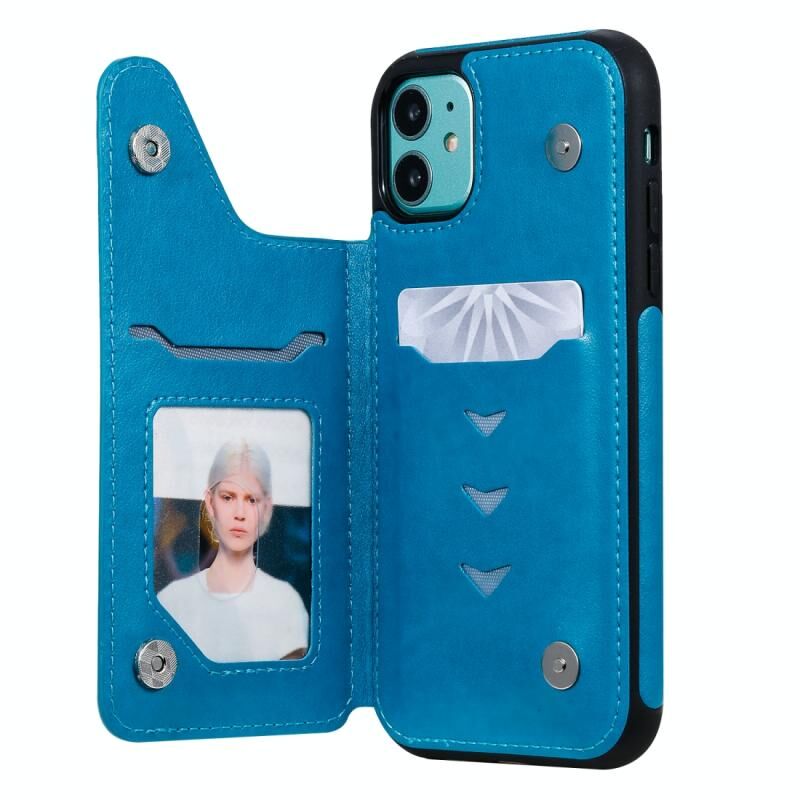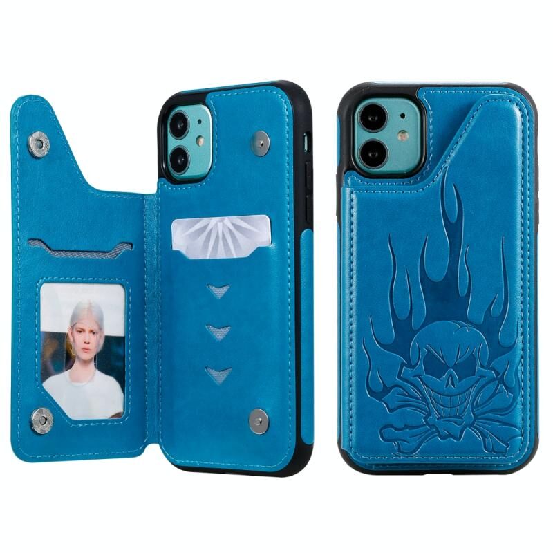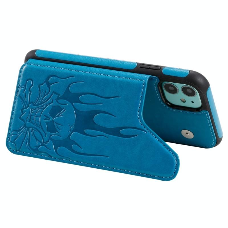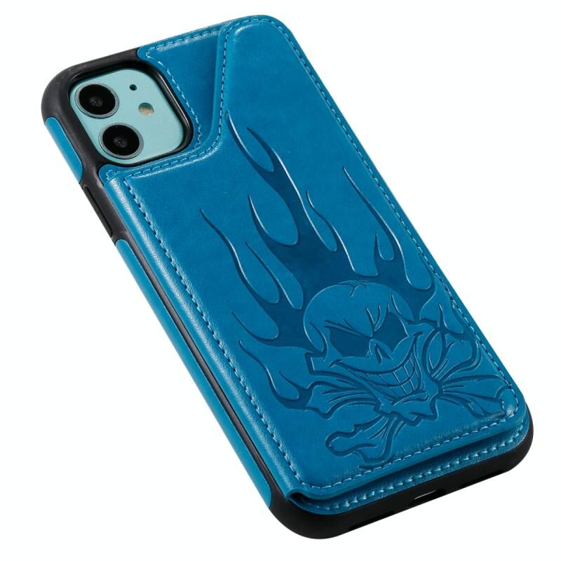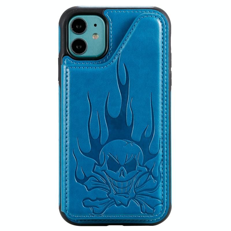 For iPhone 11 Skull Head Embossing Pattern Shockproof Protective Case with Holder & Card Slots & Wallet(Blue)
