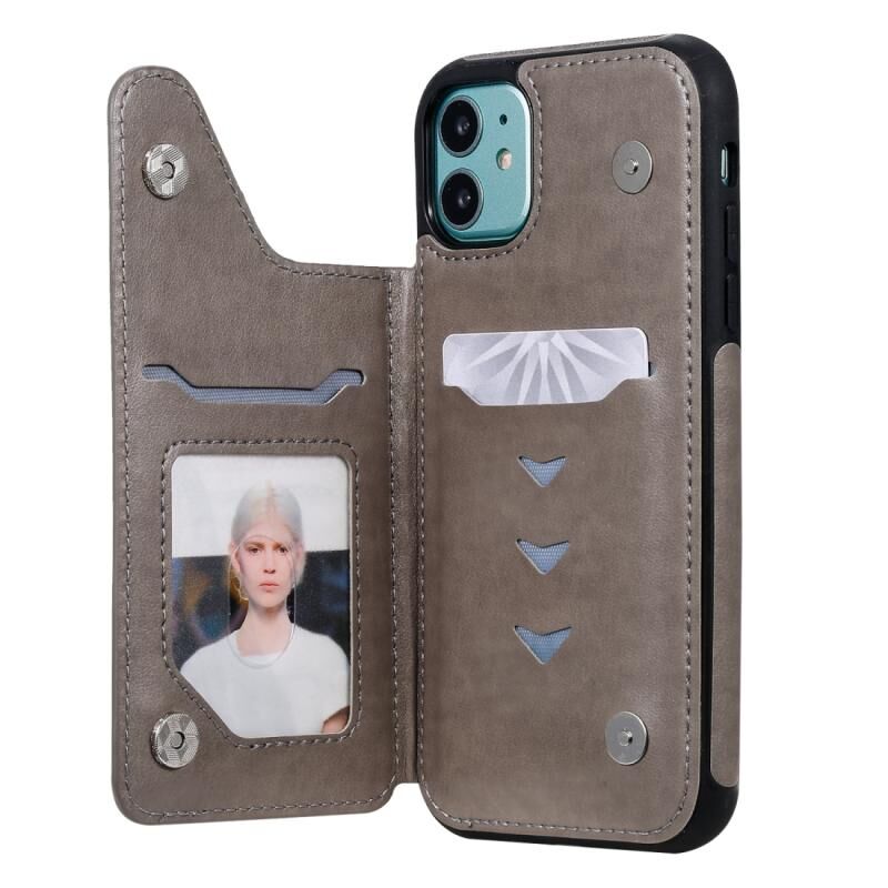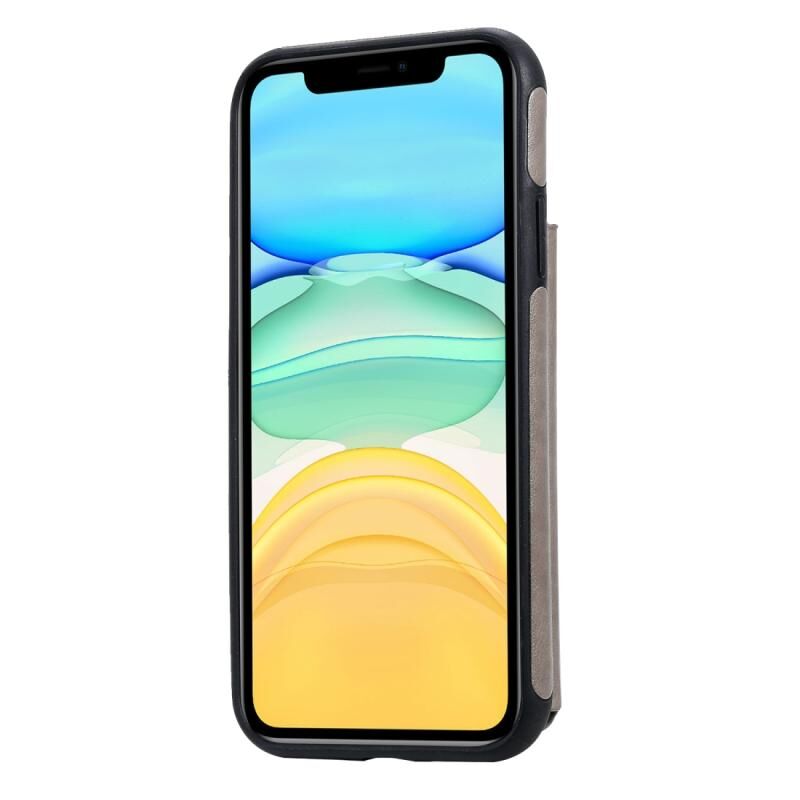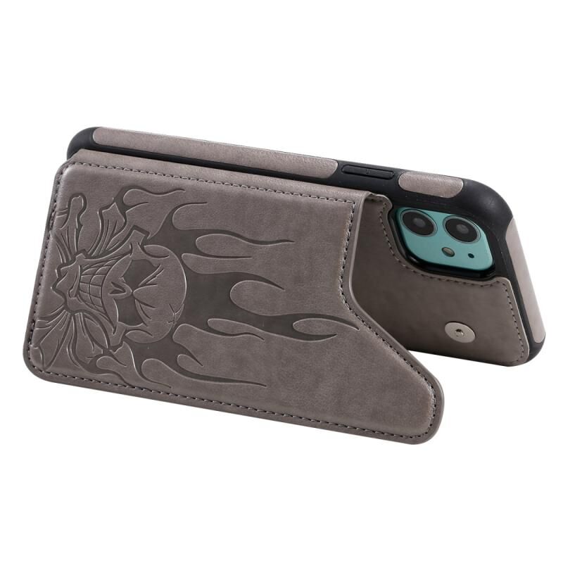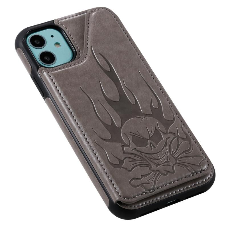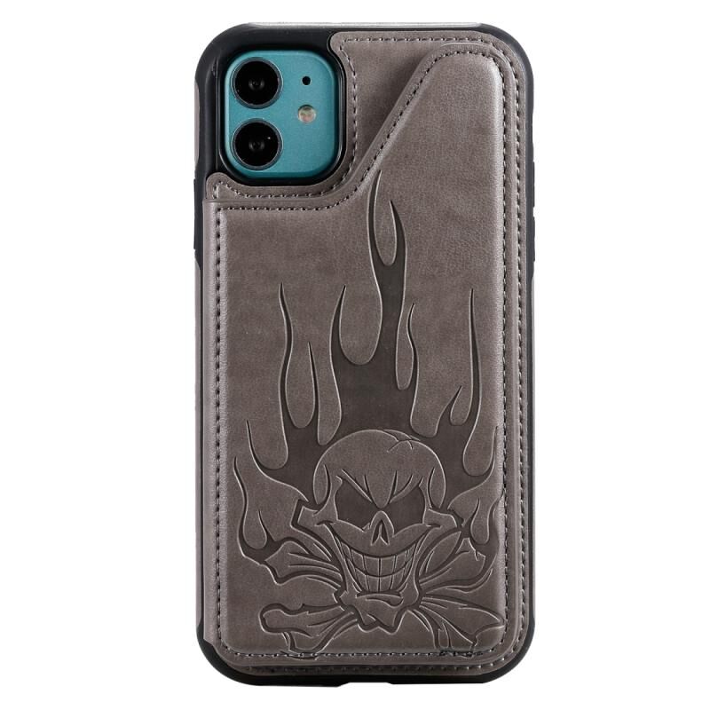For iPhone 11 Skull Head Embossing Pattern Shockproof Protective Case with Holder & Card Slots & Wallet(Grey)
