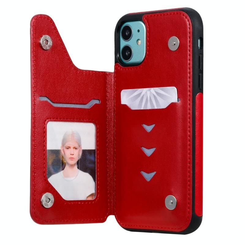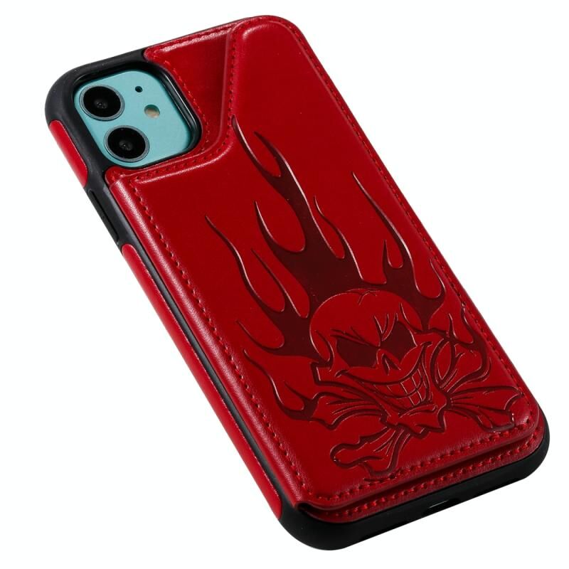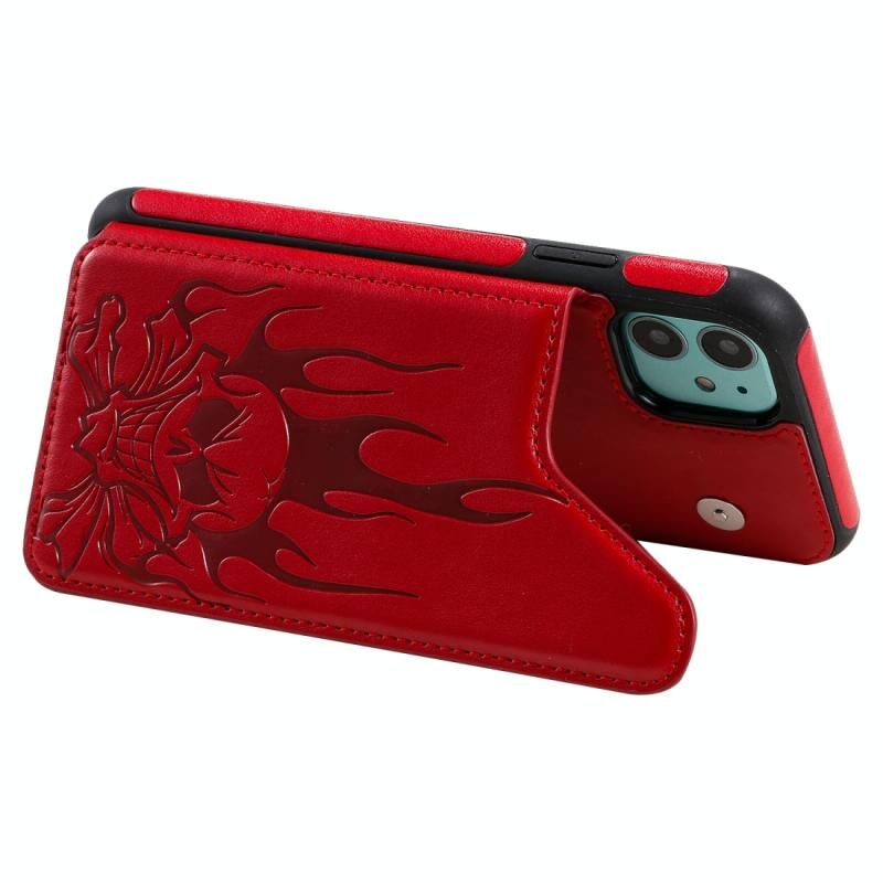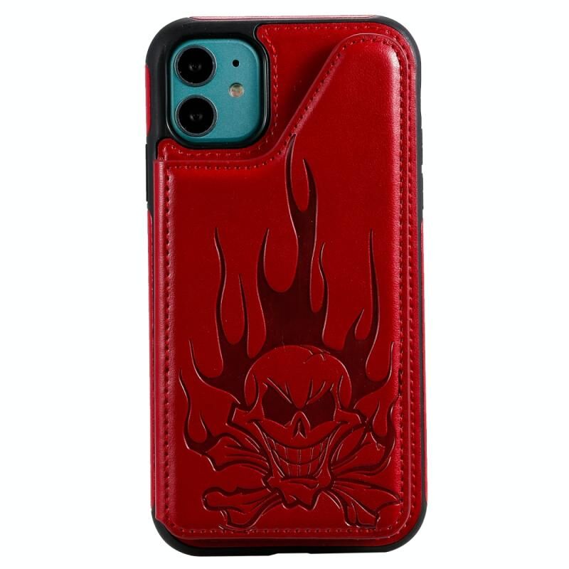 For iPhone 11 Skull Head Embossing Pattern Shockproof Protective Case with Holder & Card Slots & Wallet(Red)