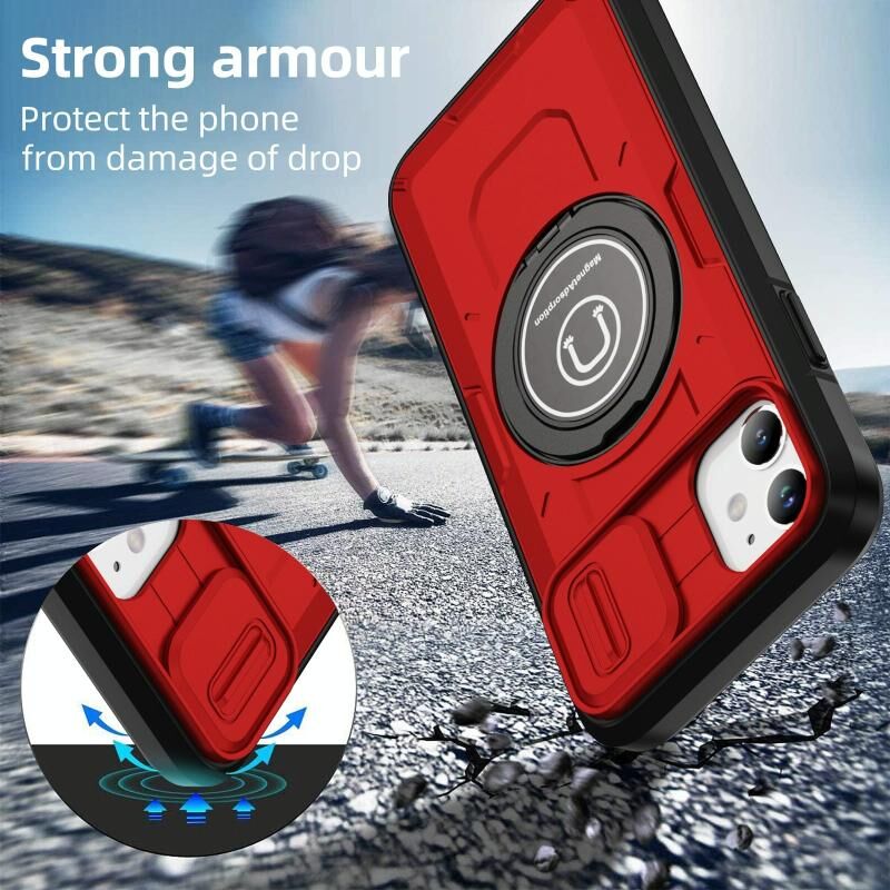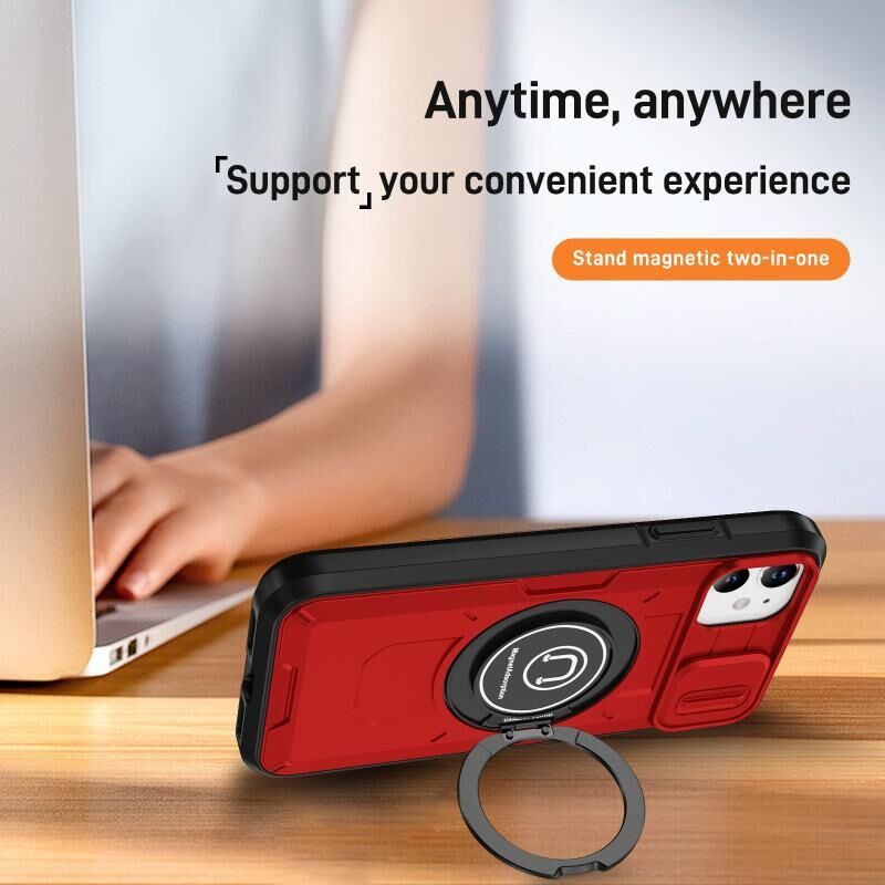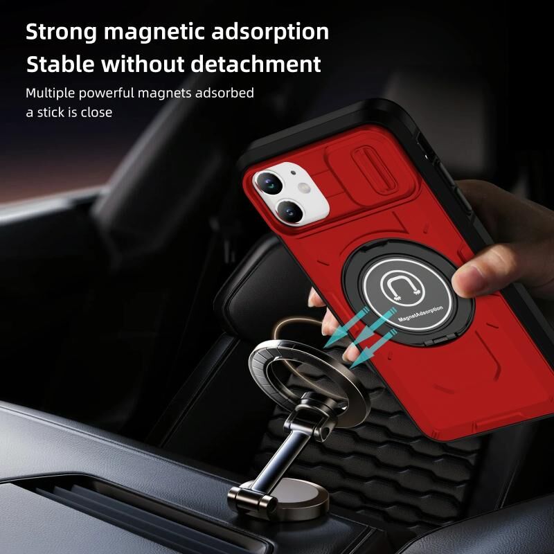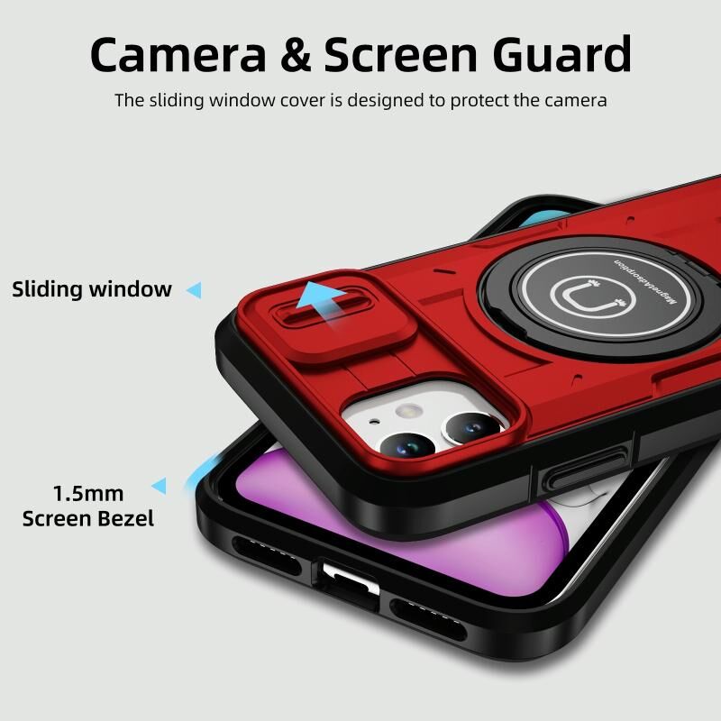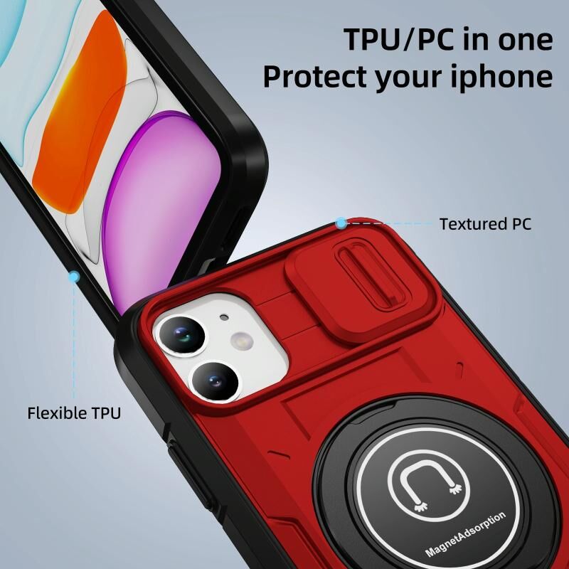 For iPhone 11 Sliding Camshield TPU Hybrid PC Magnetic Holder Phone Case(Red)