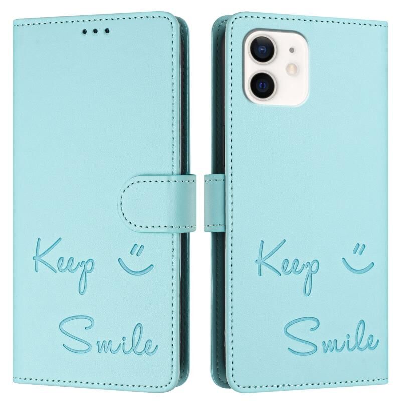 Θήκη τηλεφώνου δερμάτινη με ανάγλυφο χαμόγελο και προστασία RFID για iPhone 11 (Μέντας Πράσινο)