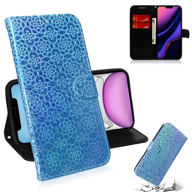 Θήκη για iPhone 11, μονόχρωμη, πολύχρωμη, με μαγνητικό κούμπωμα, οριζόντια, από δερματίνη PU, με βάση στήριξης & θήκες για κάρτες & πορτοφόλι & κορδόνι (Μπλε)