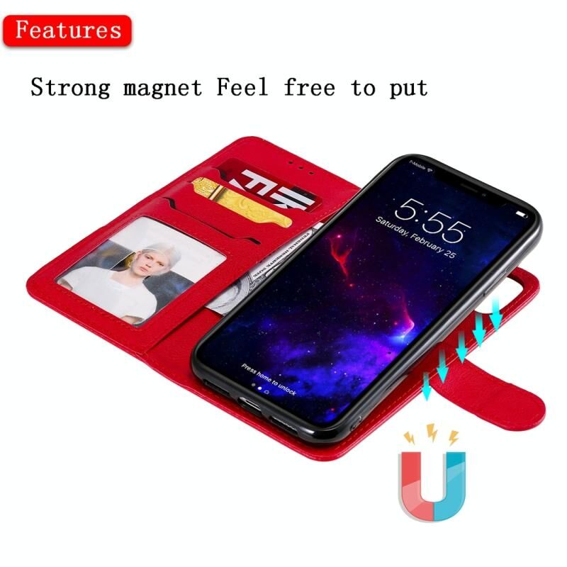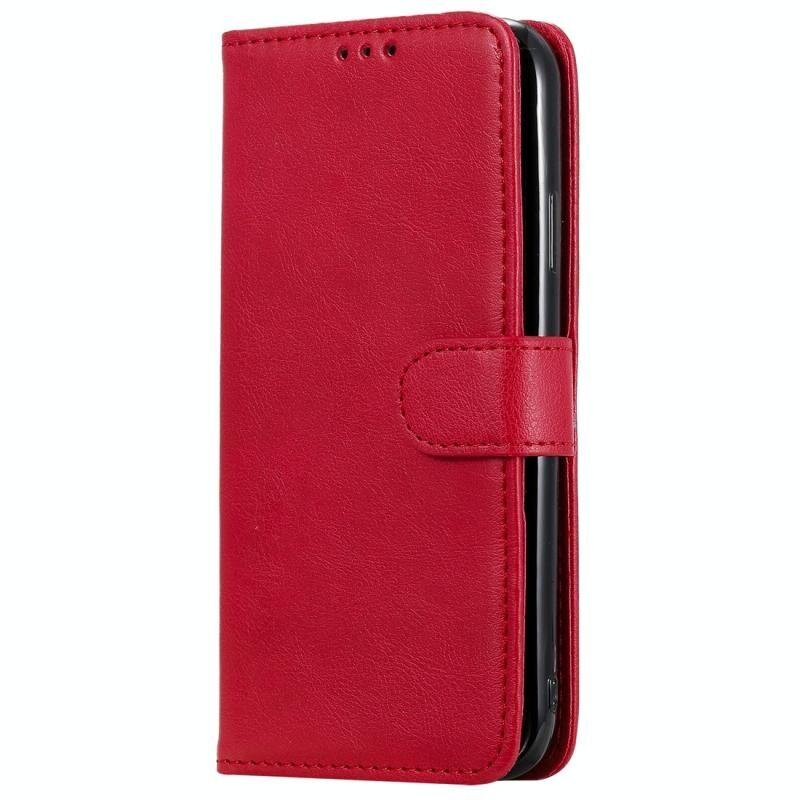 For iPhone 11 Solid Color Horizontal Flip Protective Case with Holder & Card Slots & Wallet & Photo Frame & Lanyard(Red)