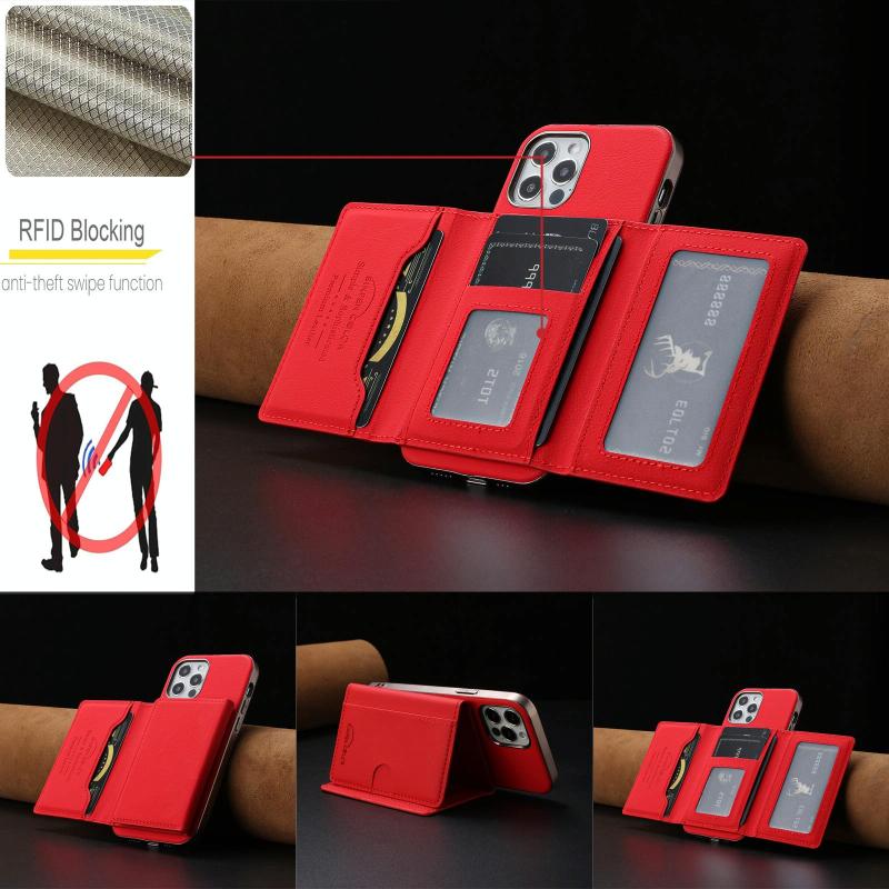 2. Magnetic Tri-Fold Wallet Design: Features a horizontal fold with a strong magnetic closure for easy access and secure storage.