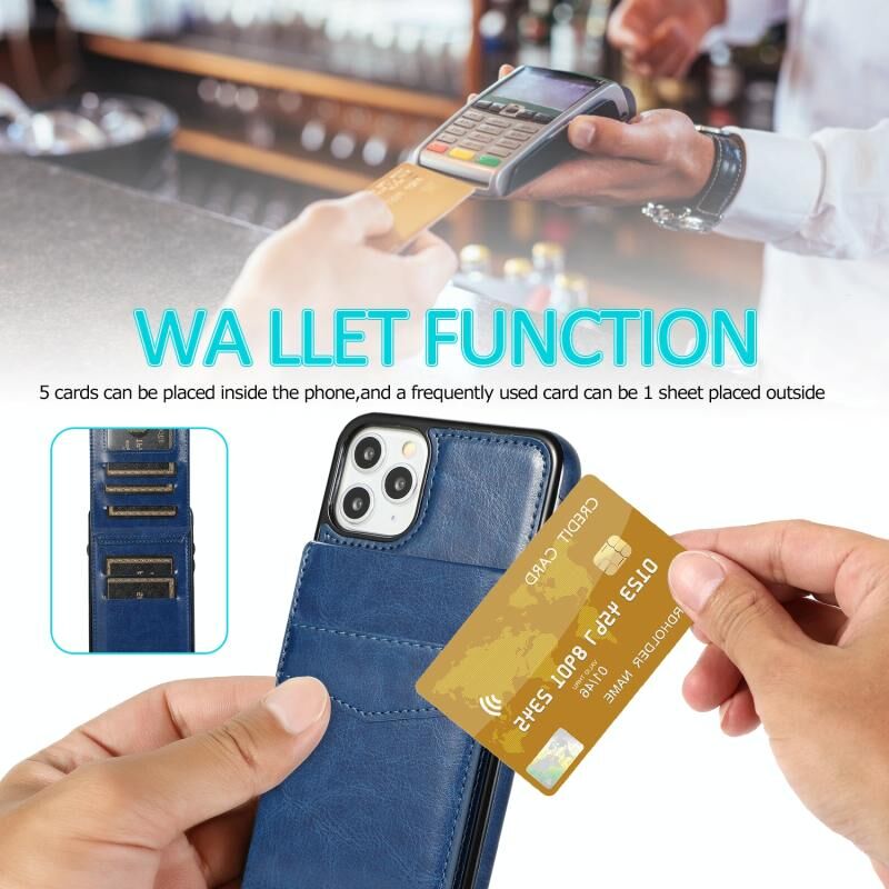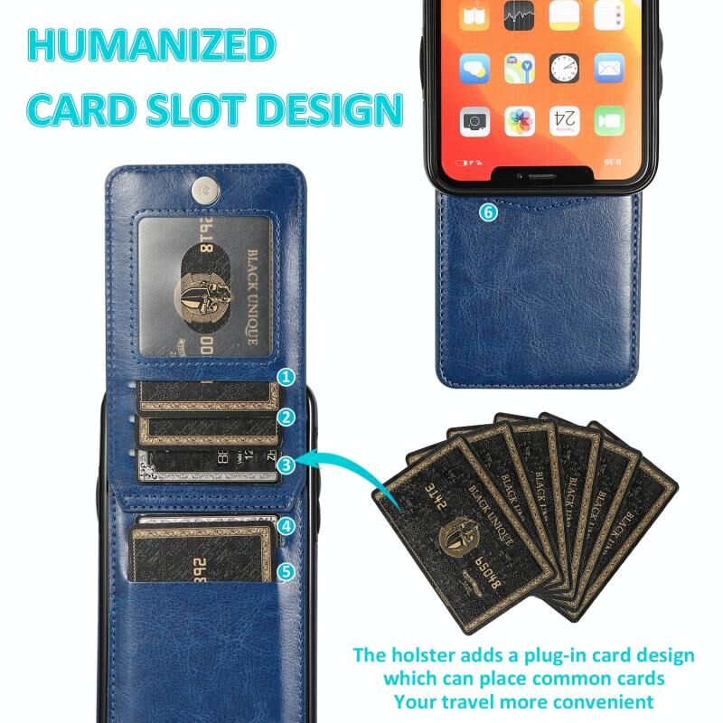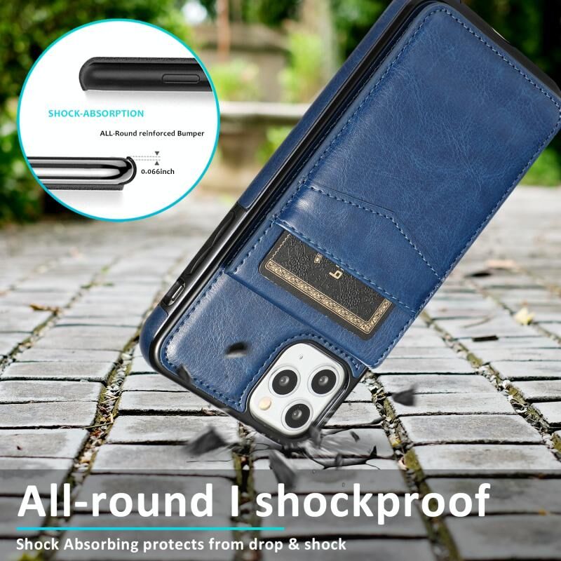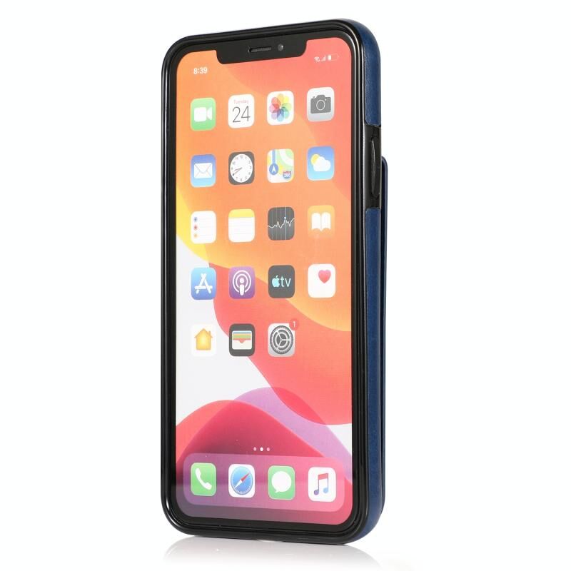 For iPhone 11 Solid Color PC + TPU Protective Case with Holder & Card Slots (Blue)