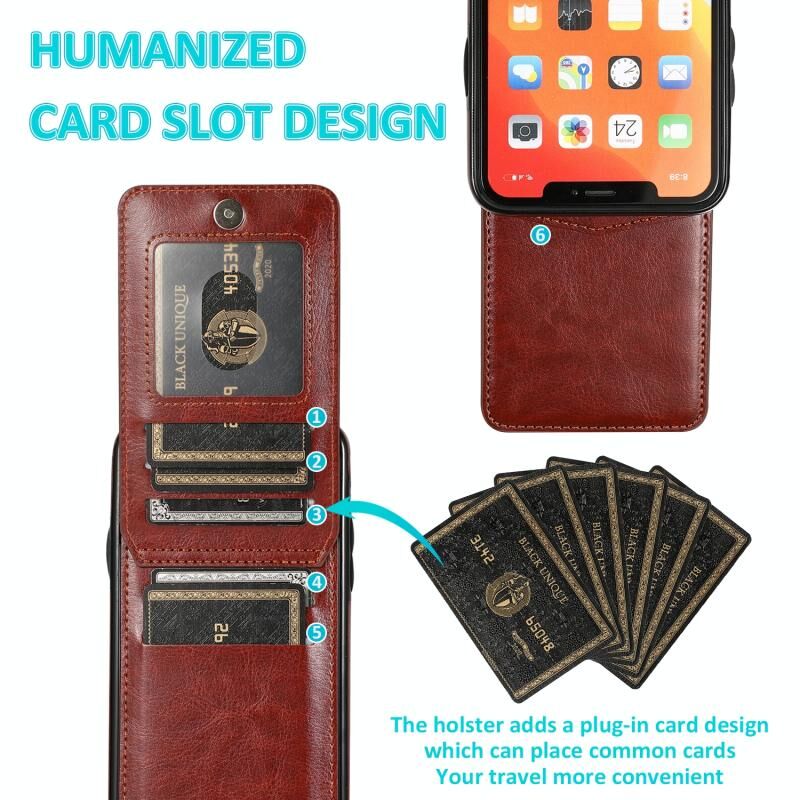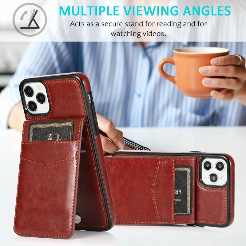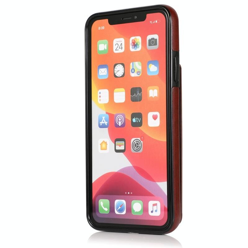 For iPhone 11 Solid Color PC + TPU Protective Case with Holder & Card Slots (Brown)