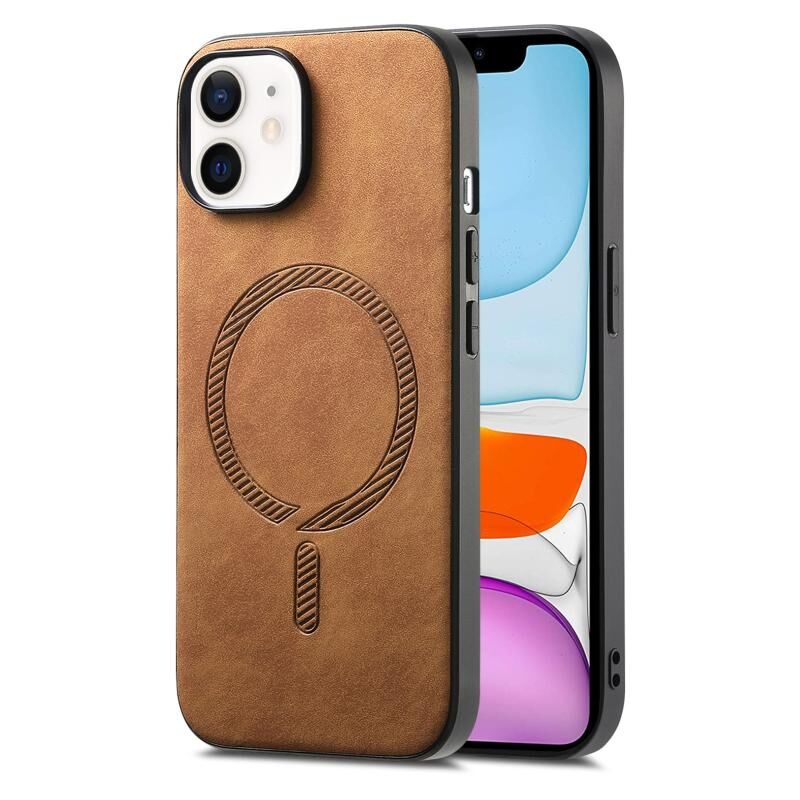 Θήκη κινητού τηλεφώνου για iPhone 11, μονόχρωμη, ρετρό, με MagSafe και πίσω όψη από PU (Ροζ)