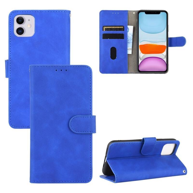 Θήκη για iPhone 11 με αίσθηση δέρματος, μονόχρωμη, μαγνητικό κούμπωμα, οριζόντια, με υφή μοσχαριού, από δερματίνη PU, με βάση & θήκες για κάρτες & πορτοφόλι (Μπλε)