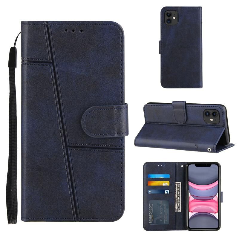 Θήκη για iPhone 11 από Δέρμα με Οριζόντιο Άνοιγμα, Υφή Μοσχαρίσιου Δέρματος, Ράψιμο, με Λουρί, Θήκη Κάρτας, Πορτοφόλι & Λουρί Χεριού (Καφέ)