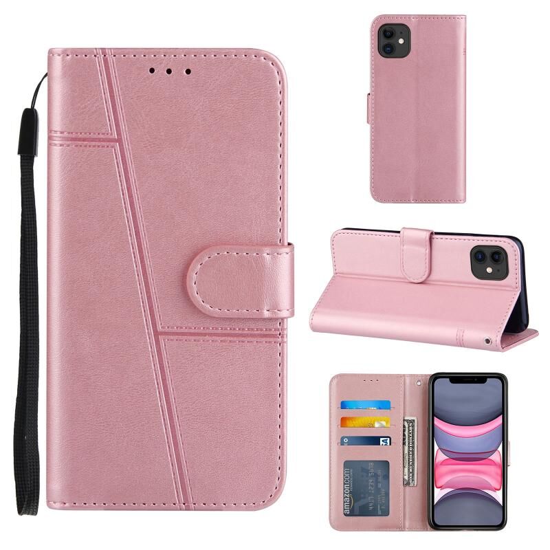 Θήκη για iPhone 11 από Δέρμα με Οριζόντιο Άνοιγμα, Υφή Μοσχαρίσιου Δέρματος, Ράψιμο, με Λουρί, Θήκη Κάρτας, Πορτοφόλι & Λουρί Χεριού (Καφέ)