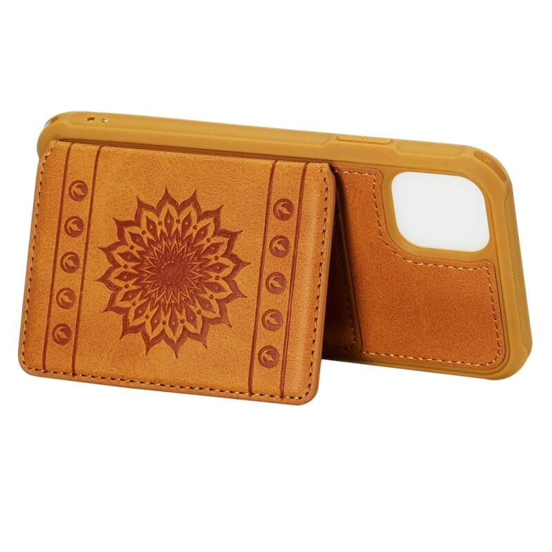For iPhone 11 Sunflower Embossing Pattern PU + TPU Case with Holder & Card Slots & Photo Frame & Lanyard(Brown)