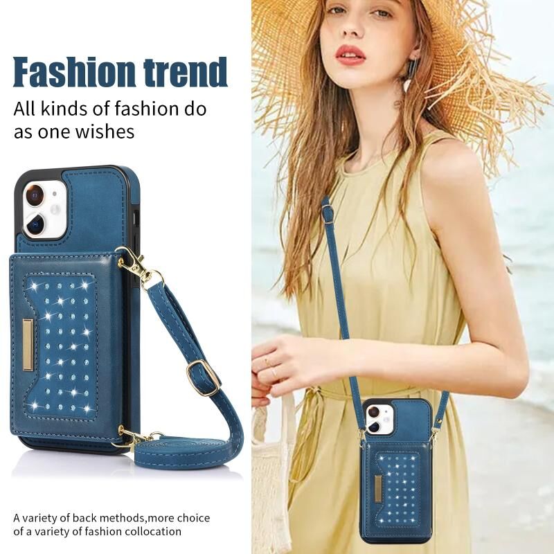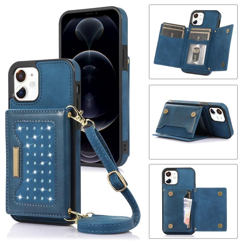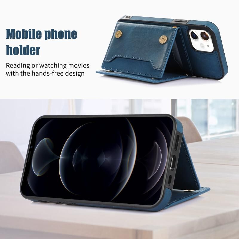 Θήκη τηλεφώνου από δέρμα με τριπλή προστασία RFID για iPhone 11 με κορδόνι (Μαύρο)