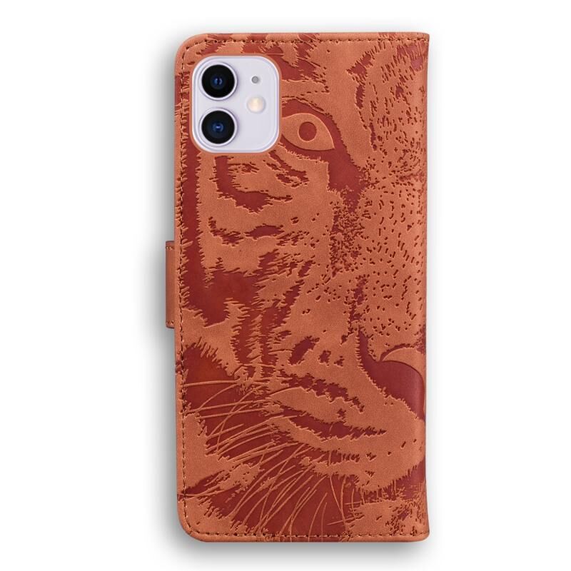 Θήκη για iPhone 11 με ανάγλυφο σχέδιο τίγρης, οριζόντια, από δέρμα με βάση & θήκες για κάρτες & πορτοφόλι (Κόκκινο)