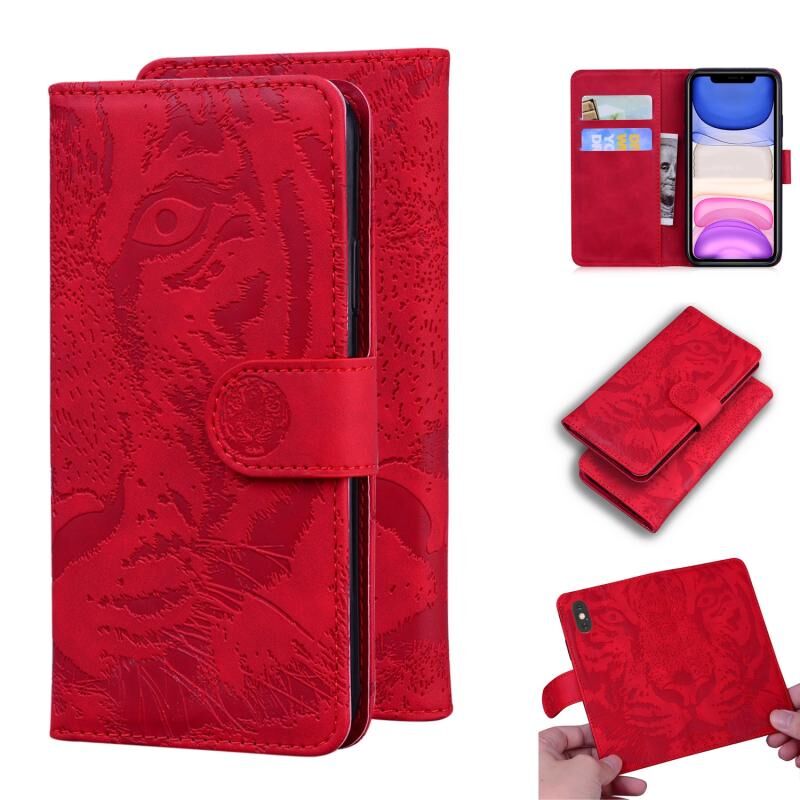 Θήκη για iPhone 11 με ανάγλυφο σχέδιο τίγρης, οριζόντια, από δέρμα με βάση & θήκες για κάρτες & πορτοφόλι (Κόκκινο)
