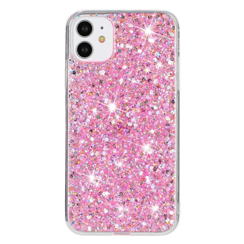 Θήκη τηλεφώνου για iPhone 11, Διαφανές πλαίσιο με γκλίτερ σε σκόνη TPU (Ροζ)