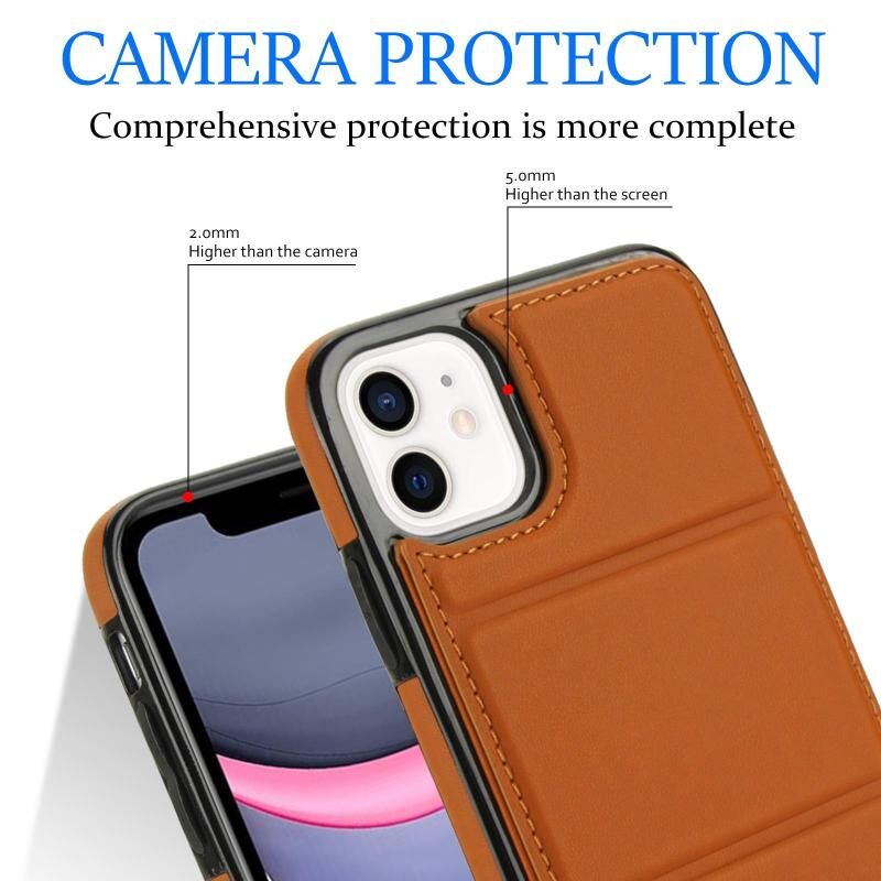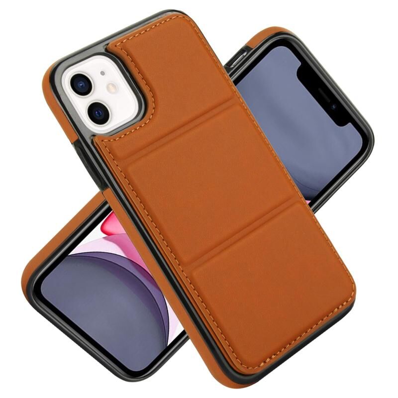 For iPhone 11 Tri-fold Holder Leather Phone Case with Card Slot(Brown)