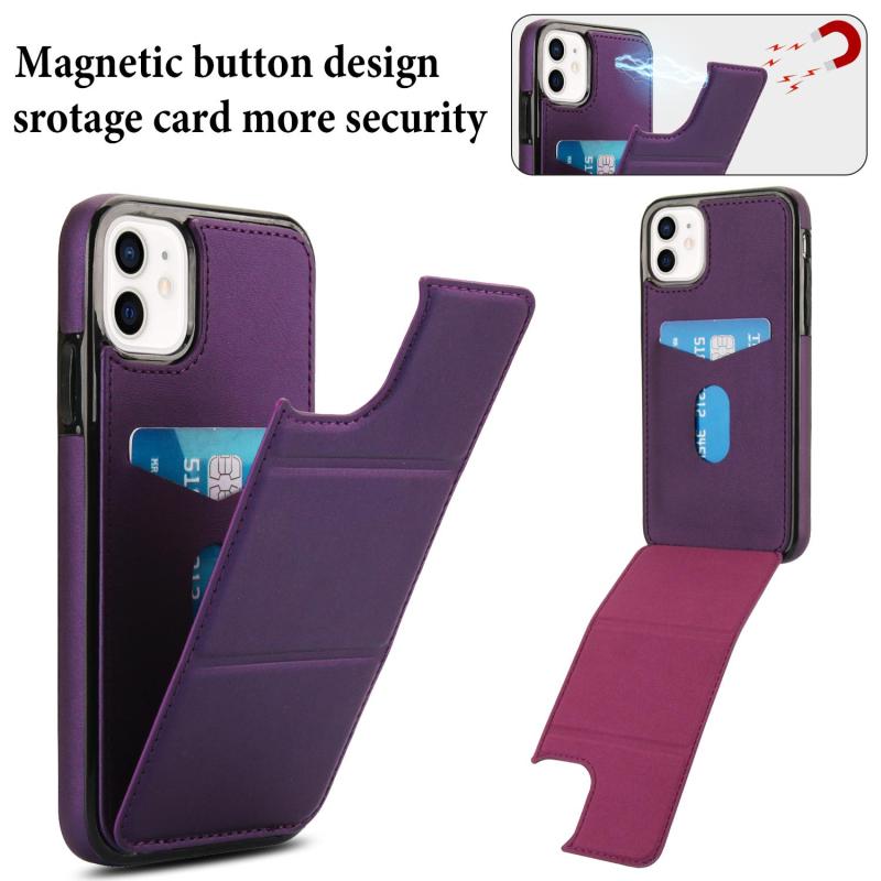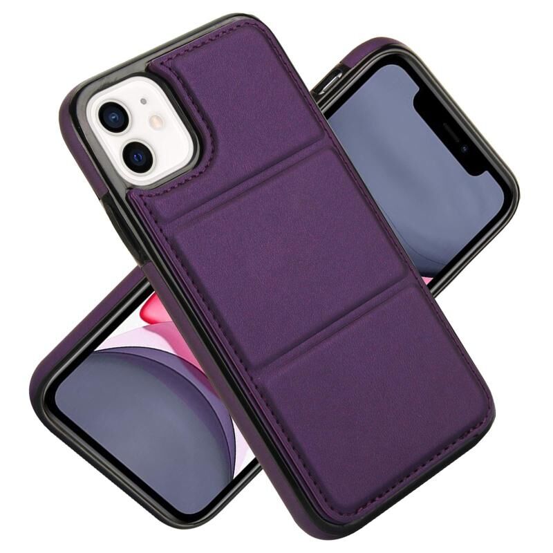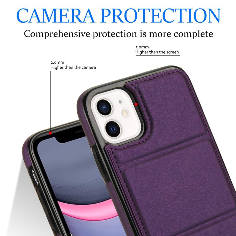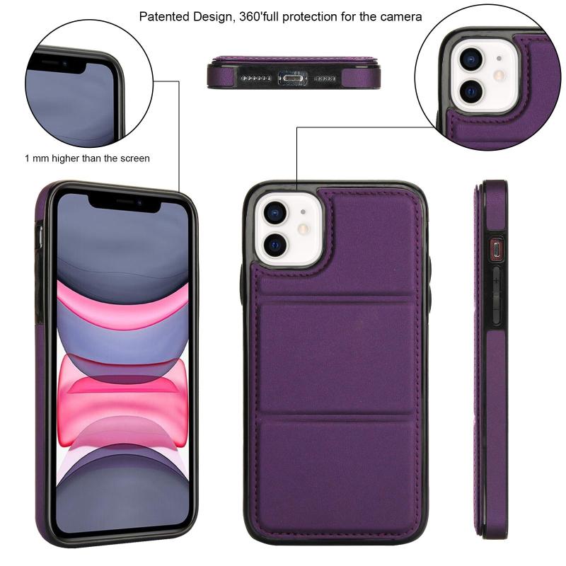 For iPhone 11 Tri-fold Holder Leather Phone Case with Card Slot(Dark Purple)