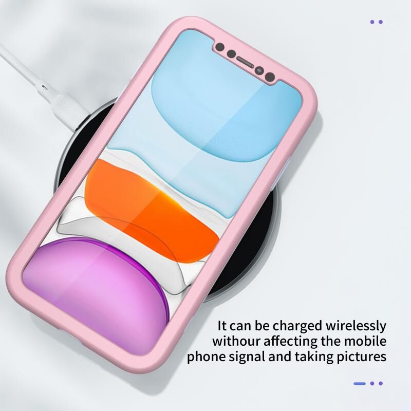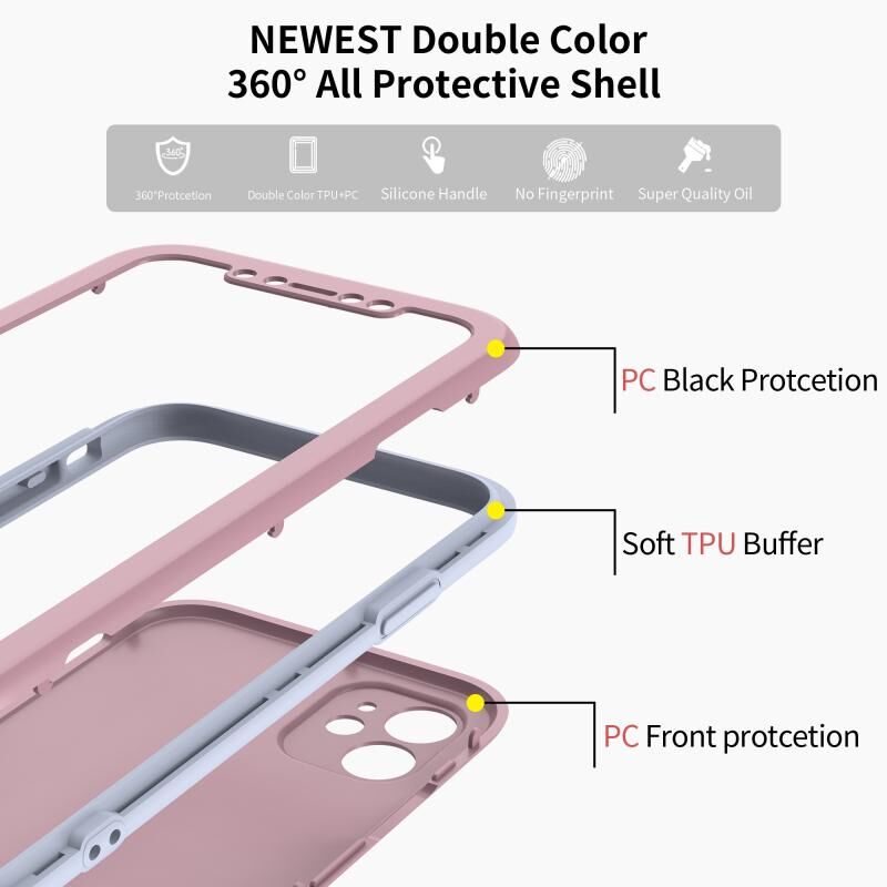 For iPhone 11 Two Color Full Protective 3-in-1 Phone Case(Pink)