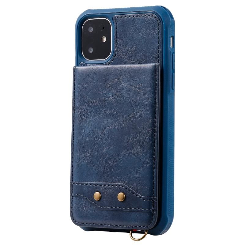 For iPhone 11 Vertical Flip Wallet Shockproof Back Cover Protective Case with Holder & Card Slots & Lanyard & Photos Frames(Blue)
