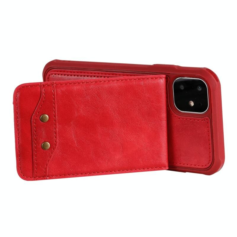 For iPhone 11 Vertical Flip Wallet Shockproof Back Cover Protective Case with Holder & Card Slots & Lanyard & Photos Frames(Red)