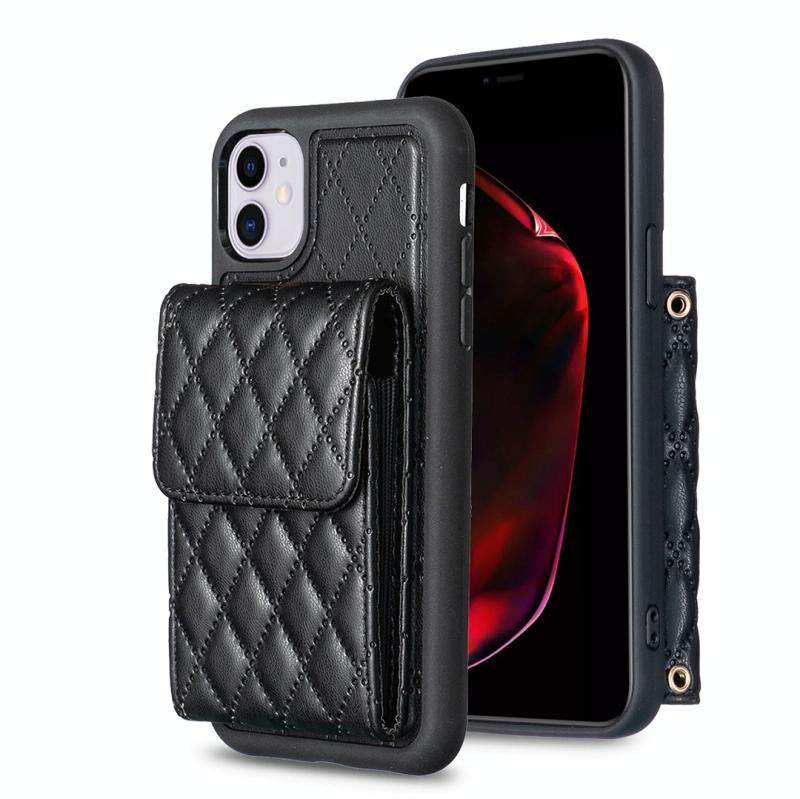 For iPhone 11 Vertical Wallet Rhombic Leather Phone Case(Black)