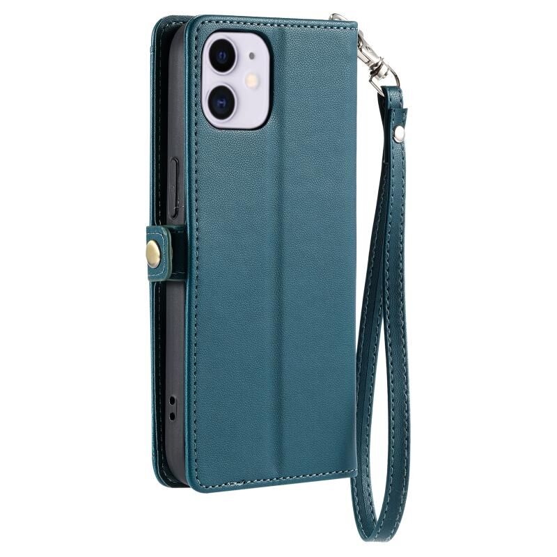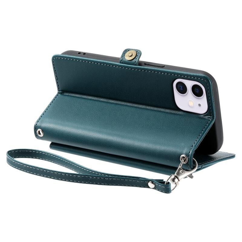 For iPhone 11 Wallet Multi-card Slot Leather Phone Case with Lanyard(Green)