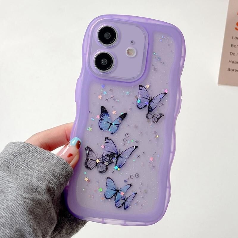 For iPhone 11 Wave Edge Butterfly TPU Hybrid PC Phone Case(Purple)